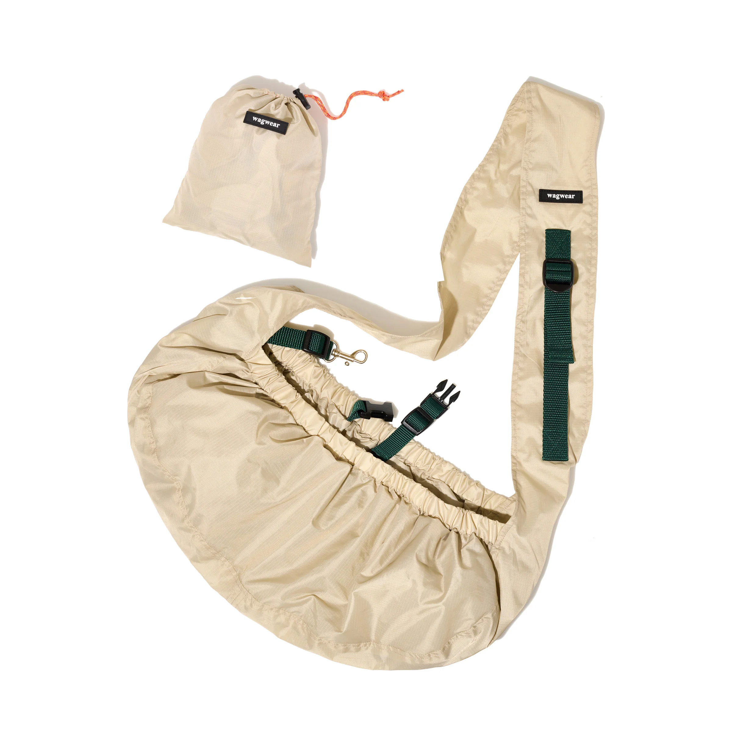NYLON PACKABLE MESSENGER POUCH CARRIER is a lightweight bag for small dogs that is conveniently packed into a pouch and unfolds into a full-sized carrier. Colors are Beige / Forest, Army / Purple, and Burgundy / Flare Orange.