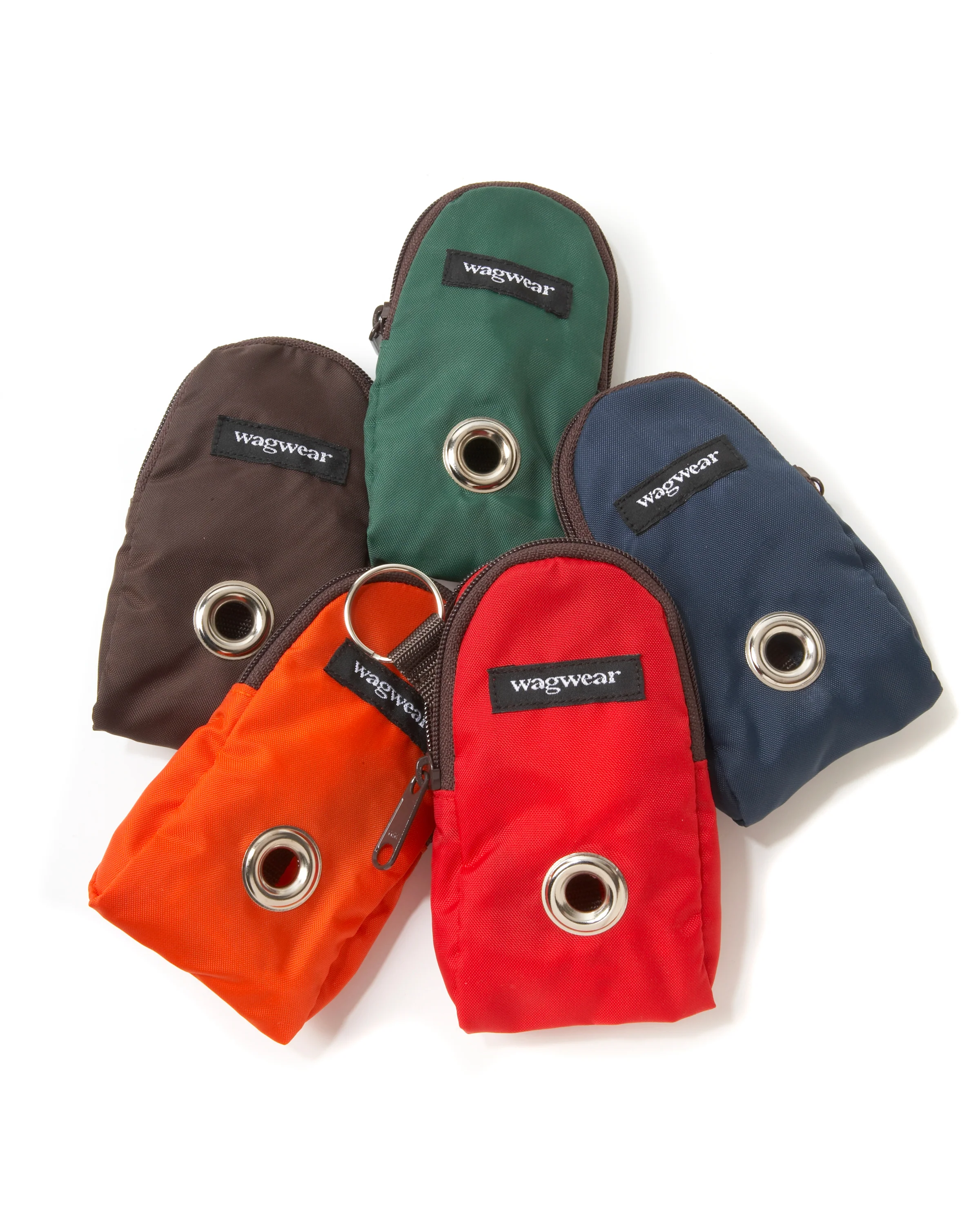 NYLON LEASH POUCH the age-old dilemma of being caught on a walk without a baggie is finally resolved with this stylish little pouch. Made of waterproof nylon, it snaps onto any leash. Just snap one inside handle and one snap out, to stay put. The nickel grommet allows easy access to a roll of baggies (baggies sold separately). Made in the U.S.